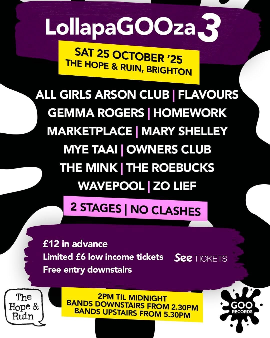 Goo Records have announced details of their ‘LollapaGOOza 3’ all day event which will be taking place in Brighton at the ever-popular Hope & Ruin, which is located on Queens Road between the Clock Tower and Brighton Mainline Railway Station.