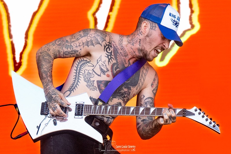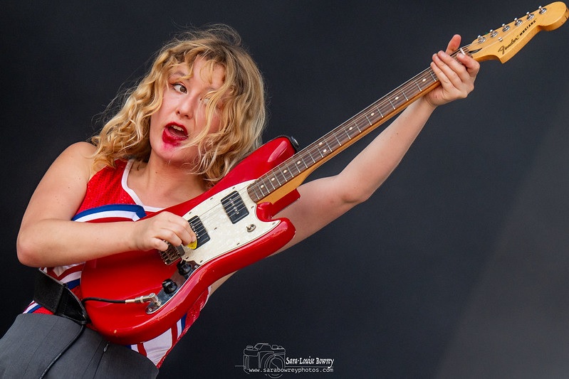 The mosh pit has now got bigger and as the ground is so dry from the lack of rain in the area over the past few months dust lifts from the ground and fills the air. As the song comes to a close and people from the mosh pit calm down, someone spots a shoe on the ground and another finds a pair of glasses that are covered in dust. The set seems to have rattled by. We hear the rock-driven ‘Love’ and ‘No Homo’ before Phoebe says “This is our last song” there are a few boos from those wanting more and the lead-vocalist continues “But it’s a good one. It is ‘C*ntology 101”. There is a bit of crowd surfing going on during this song, Phoebe races back down off the stage to join the punters and crowd surfs herself as the song comes to a close. That’s it, a quick-fire set that lasts 26 minutes.