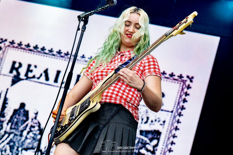 Having walked from Kew Bridge station to the north arena entrance of Gunnersbury Park to pick up my wristband, I made my way through security and walked swiftly towards the stage to see the opening band of the event, Real Farmer. They are one of the newest acts on today’s line-up, although they are a band I have already had the privilege of seeing before when they played at the opening day of this year’s The Great Escape festival in Brighton back in mid-May on the smaller of the two enclosed beach stages and were actually performing at the same time Pete Doherty was playing on the larger beach stage. The four-piece outfit are from Groningen in the Netherlands and include members of other Dutch bands, Personal Trainer (Leon Harms) and The Klittens (Marrit Minima). Their sound incorporates all-out punk with hints of new wave, garage punk and indie rock. They certainly wouldn’t have looked out of place had they been around in the last 70s and early 80s.
