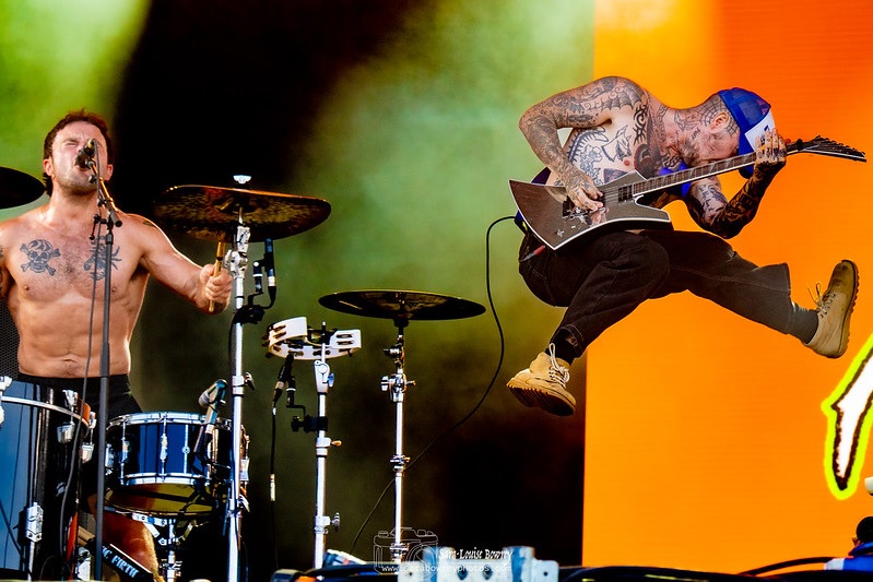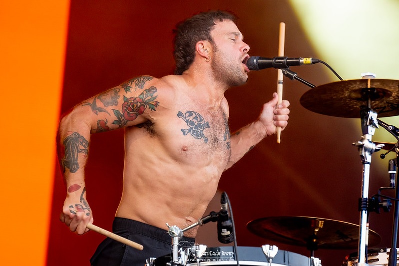 Soft Play are the fourth act to hit the Gunnersbury Park stage, and it’s quite noticeable the crowd is getting bigger as we move towards the final bands to perform. For those that are unaware, Soft Play were called Slaves up until December 2022. The name change was announced at the time as the band members stated that the original name no longer represented who they were or what their music stood for and even apologised for any offence it may have caused.
