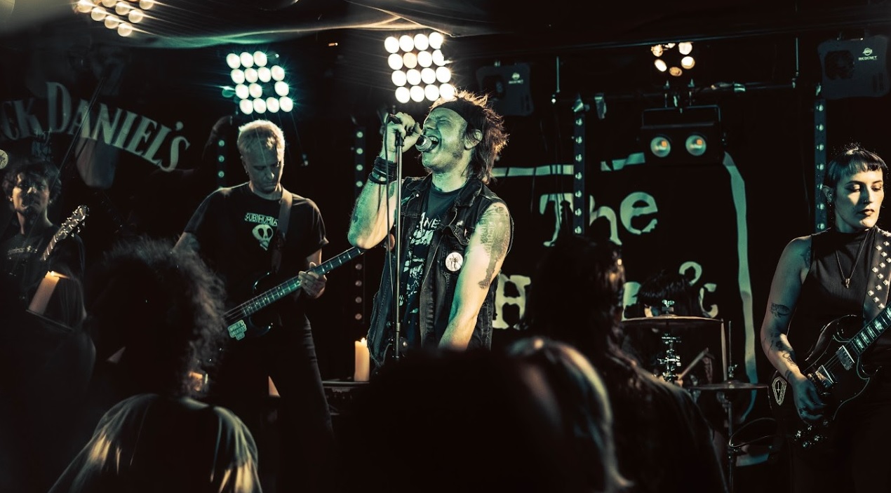 Looking at photos of their frontman, Koppa, you might think that he’s a member of punk outfit Conflict, as he has the look and the vibe, or at least possibly a member of Lords Of The New Church, but musically this isn’t really the case. They in fact blend early ’80s goth with post-punk in a horror-tinged sound. Their name is a Latin term literally meaning “fear of empty space”. In art, it refers to the tendency to fill every available space in an artwork with detail, leaving no empty areas. The concept is also found in philosophy and physics, where it relates to the idea that nature abhors a vacuum. There certainly isn’t any “empty space” in their sound, certainly not if eye-catching drummer Marziona has anything to do with it. Plus there is a duo of guitarists, Lucrezia Peppicelli and Sola, who along with female bassist Gigi Fagni, ensure that there is a solid wall of sound on offer this evening at The Hope & Ruin.