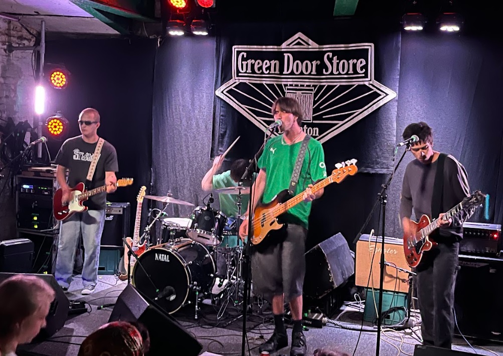 Festival season may be upon us and gigs a little thin on the ground, but tonight the heavens have opened and rained down three fine quality Brighton bands for our audio pleasure. I really shouldn’t be out on a school night, let alone a school night before I go on holiday, but whenever Shady Baby pop up (which is never often enough for me), I just had to get myself down to legendary Green Door Store for my sonic kicks.