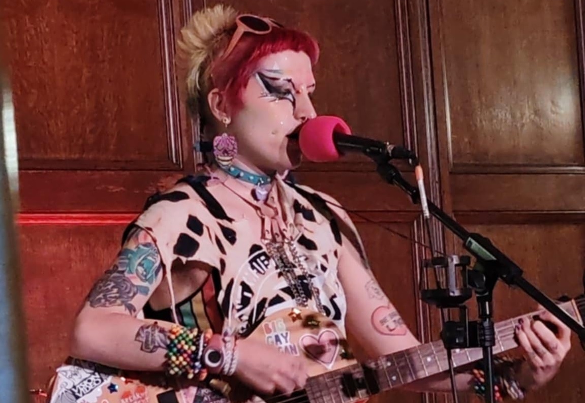 In my excitement at discovering another new band I lose track of time and have to make a mad dash to The Old Vic to see Brighton favourite Emily Flea play an acoustic set and arrive halfway through the first song. I saw Emily play a couple of times back in 2019 supporting Steve Ignorant’s Slice of Life in Life in Lewes and Maid Of Ace in Hastings, but this was the first time since. My standout memory from 2019 was of how angry Emily was back then, but today there is a sense of vulnerability to go with the anger in the songs. Emily talks about being anxious about today given that there are certain bands playing Rebellion that are homophobic and would never dream of sharing a stage with, but today is a chance to reclaim this space for the Trans Queer community. The set includes covers of Crywank’s ‘Anti-Capitalism Is A Great Marketing Technique’ and The Damned’s ‘Life Goes On’ which Emily says is a difficult one and so it proves initially, but not one to shy away from a challenge it improves substantially in the second half. There is a lot of interest in this well attended set and Emily is visibly happy and somewhat shocked to see Dunstan Bunce of Chumbawumba and Interrobang fame is in the audience. Emily’s dad makes a guest appearance to play bass on a few songs and gets a good reception. There’s the classic song by The Fleas ‘Shut Up And Have A Wank’, but the highlight of the set has to be the banger that is the 2024 single ‘No Pride’ as Emily performs with Daffodildos, which has a great singalong chorus. Emily certainly made The Old Vic a safe space for half an hour with a brave performance and hopefully educated any ignorant people out there.