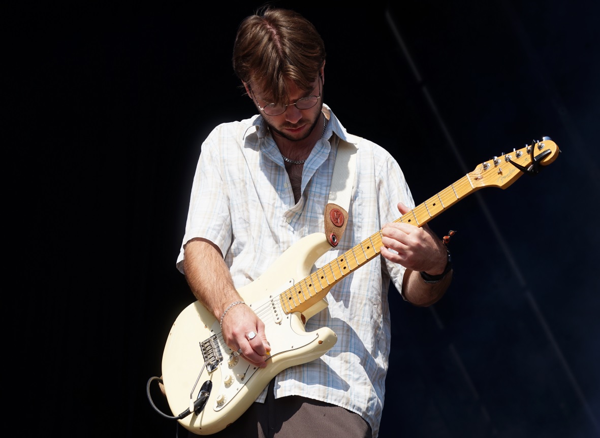 The second band of the day I saw were FEET at the Castle Stage. They are a five-piece band formed in Coventry and now residing in North London. This was the first time I had seen them perform, and I was impressed. They play music that blends a variety of sounds. It’s got a groove to it, it’s catchy, and at times gritty. They start their set with the 2023 single ‘Changing My Mind Again’. Frontman George Haverson, who plays the tambourine for most of the set and has moves resembling Mick Jagger, says, “Welcome, we are Feet”. They then play the 2022 single ‘Can’t Get In’. The set continues with songs from the band’s second album ‘Make It Up’, with ‘Greasy Boy’ appearing to be a crowd favourite. Before the sixth track, George says, “The next song is about sitting down. You guys are doing it very well at the back”. ‘Sit Down’ is a good, catchy, rockier track, as is a standout track for me. George exchanges his tambourine for a harmonica on the next track, then we hear ‘English Weather’. The last song performed is about the time the band spent staying in one of the guitarist’s grandparents’ chalet in Portsmouth. George then says, “Thank you very much. Enjoy the rest of your festival”.