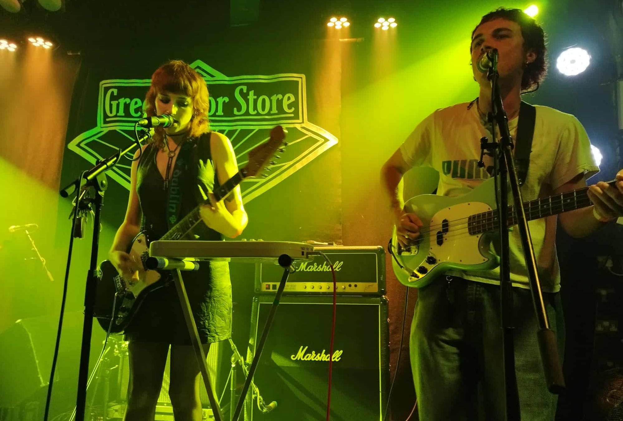 I whizzed across from The Prince Albert to the Green Door Store in order to see what Dublin outfit Adore had to offer, as I had heard great things about their Great Escape performance at The Hope & Ruin back in May that a colleague reviewed. According to their social media, they state that “Adore are a 3 piece garage punk band doing their best”. I can whole-heartedly state that this might just be the understatement of the year! Thus far they have released a half-dozen singles, and four of these will be appearing on next month’s debut 7-track EP release, which is titled ‘Biter’. They are led by Lara Minchin on lead vocals and guitar, who informs us that it’s bassist Callum’s first outing with the band. I’m seriously sceptical about this as they are such a tight outfit, but she may well be telling the truth. Cementing the lineup is a drummer who is sporting a Chalk (the Belfast band, not Brighton venue) t-shirt.
