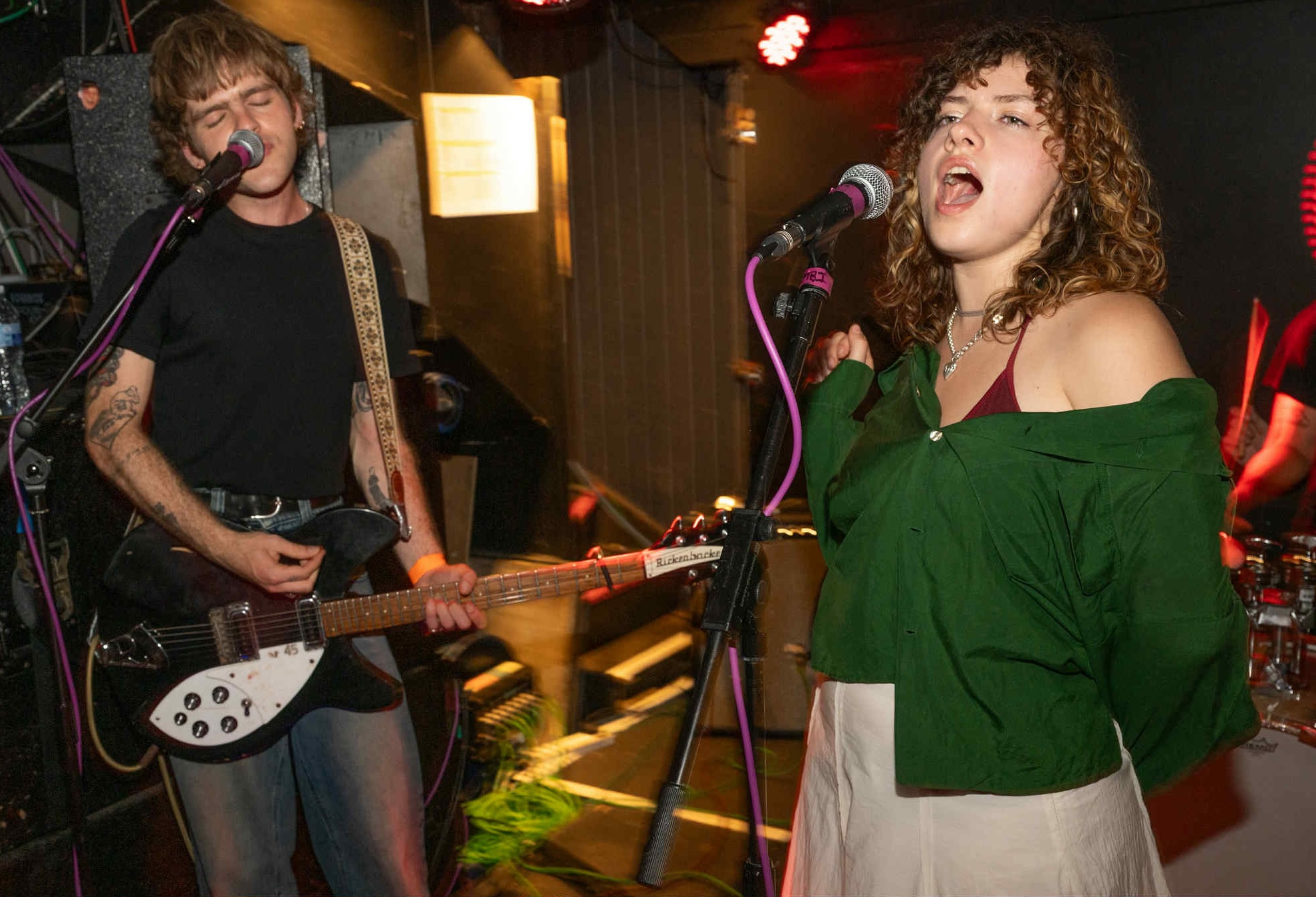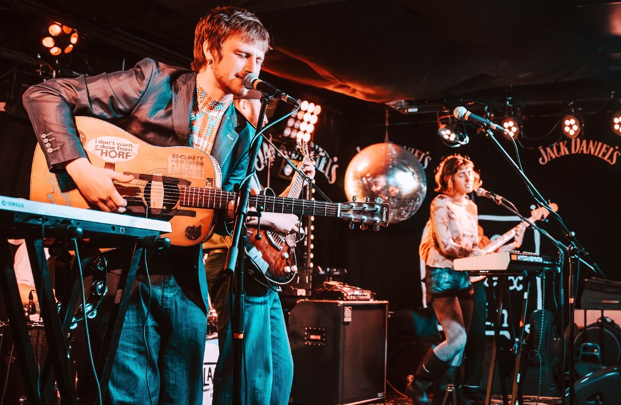 It was decision time for me, do I head over to the Concorde 2 for my planned schedule to see Getdown Services or do I stay at Patterns and see a band that is new to me, well I think I made the right choice and stayed put for Floodlights, after all they have travelled all the way from Melbourne, Australia and I’m pretty sure it’s their first time in Brighton, so it is only right for me to make the effort to stay and get myself up to speed. The band formed in 2018 and are made up by Louis Parsons (Fender Telecaster guitar & vocals), Ashlee Kehoe (Gibson SG Guitar, vocals, Harmonica), Joe Draffen (Fender Mustang Bass), and Archie Shannon (drums) Sarah Hellyer (Keys, Korg Synthesiser and Trumpet). I must confess I knew nothing about them before today, they are a post punk, rock band and 2025 saw the release of their third album ‘Underneath’.