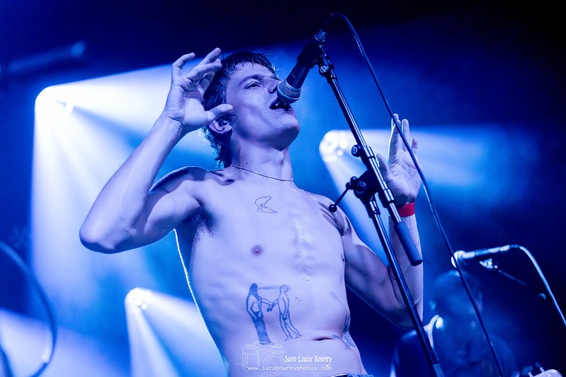 From the opening song ‘Credit’, Poppy’s saxophone gave Deadletter’s sound a distinctive edge from other contemporary post-punk bands, not dissimilar to Psychedelic Furs’ early work, but more to the fore. Their fast post-punk urgency combined with funky grooves soon got large parts of the excited Concorde 2 crowd dancing. Shirtless singer Zac gave them further encouragement from the edge of the stage. Not that it needed much help as it was one of the liveliest crowds I saw over the festival. It was a great lead performance by Zac both with his vocals and interaction with the audience, later singing on the barrier and then into the mosh pit. ‘More Heat!’ was a particular crowd favourite, amongst many in a lively energetic set by Deadletter.