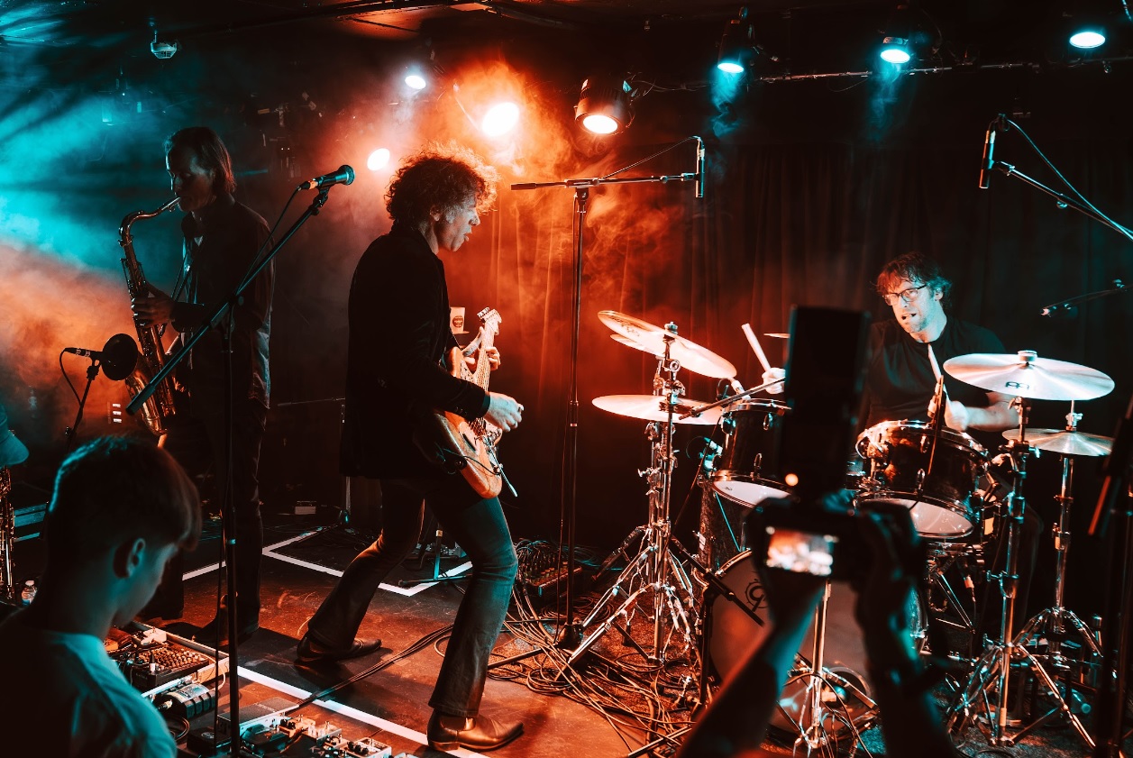 As I arrive in the Brighton Komedia basement Yin Yin are soundchecking, and bassist Remy Scheren is wandering around clutching an ice pack to his head and looking a little dazed. Remy isn’t abnormally tall, but it turns out that he has managed to hit his head on the ceiling above the Komedia stage! How he has managed to do this I’m not sure, but apparently he’s fine to play. This is just as well as the band have travelled from their base in Maastricht to play this show. Opening tune ‘The Year Of The Rabbit’, a single in 2023, starts with a very clean Hank Marvin-like guitar riff which is answered by the keyboard. The guitar then goes through a flanger pedal which puts paid to any Shadows comparisons, at least for now! There are no vocals on this tune. It turns out that the bulk of the set (and the band’s material) is instrumental. This isn’t the case with ‘Pia Dance’ however. Towards the end of the song there is a falsetto vocal line, the lyrics of which are “Pia, you make me wanna dance”. Fair enough. The tune’s keyboard intro sounds almost like bells, and the song has a Latin inspired samba rhythm which reminds me of Santana. The musicianship of the whole band is unbelievably good. Guitarist Erik Bandt serves up some stonking guitar solos, none of which sound in the least bit like Hank Marvin. It was just that intro to the first song. Honest. Having said that, ‘Ping Pong’ also has a slight hint of The Shadows, but much funkier, and with a wah-wah flavoured guitar solo, and a synth solo. Erik elicits feedback from his amp and then shreds. His playing is quite frankly jaw droppingly good.