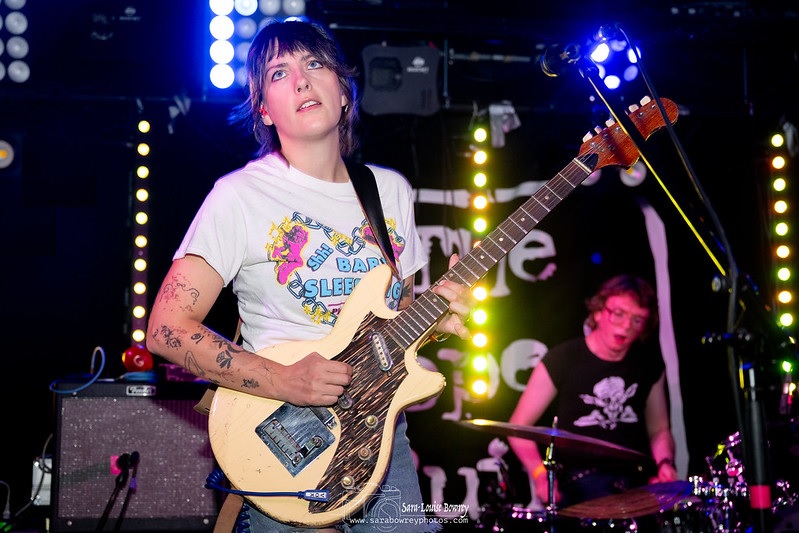 They are known for wearing crazy outfits and today was no different with various members wearing sparkly outfits, shout out to Freya’s tall glittery boots. I loved how comfortable the band were on stage, having fun with each other. As the set ended with their next single ‘Legs’, the lights were flashing like crazy, Luke lent over his drums to bash Seb’s keys with his drumsticks and Amelie, thanked for everyone coming, then held her guitar aloft in the air with Slag emblazoned on the back, whilst screaming “We are SLAG”. Despite playing Brighton plenty, I’d not previously managed to catch them, a great shame as they were bloody excellent and I have now learned the error of my ways! The band had mentioned their merch and Slag T-shirts during the set, so I duly went to buy one, but there none left in my size which I have rectified via their Bandcamp page. The band are playing the Green Door Store on 20th September for the release of their new single and are also supporting Welly at Chalk in October.