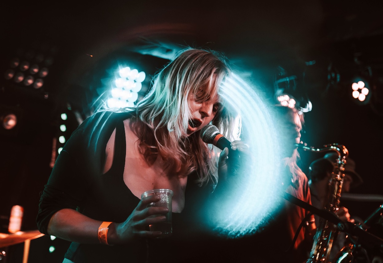Next came ‘B.M.G. Academy’ a song about her dislike of the Blue Men Group. The Volks was absolutely baking hot inside and for some reason there was next to no lighting on the stage. Someone in the crowd shouted out for the fans above the stage to be turned on, whilst the band did try, nothing worked, leaving Anna to quip “You know these fans are out because someone wants you to suffer with us, we have had so much suffering today, our car broke down and so on and so on”. The beauty of Anna’s music is it’s not in your face, it’s not mega loud, it’s pure enjoyment, utterly brilliant witty and funny lyrics, yet personal, accompanied by music that blends folk and guitar riffs, along with cool beat backing tracks. The fact that the venue was at capacity says it all, even our photographer could not get in. On the flip side of the fun songs, Anna’s music also has a tender side. One such beautiful song we were given was ‘Three Tons Of Steel’, most definitely one to sway and sing along to. The final 3 songs of the set were back to the more lively and fun, ‘170’, the excellent ‘Botanical Garden’ which had everyone singing along and got a massive cheer at the end. Anna encouraged us to go and buy a t-shirt from her at the end to put on and be even hotter, and with that it was the final song of the set ‘Spa’, one with a heavier guitar riff and plenty of crazy sound effects, a unique song for a very unique artist, one I could happily listen to all day long.