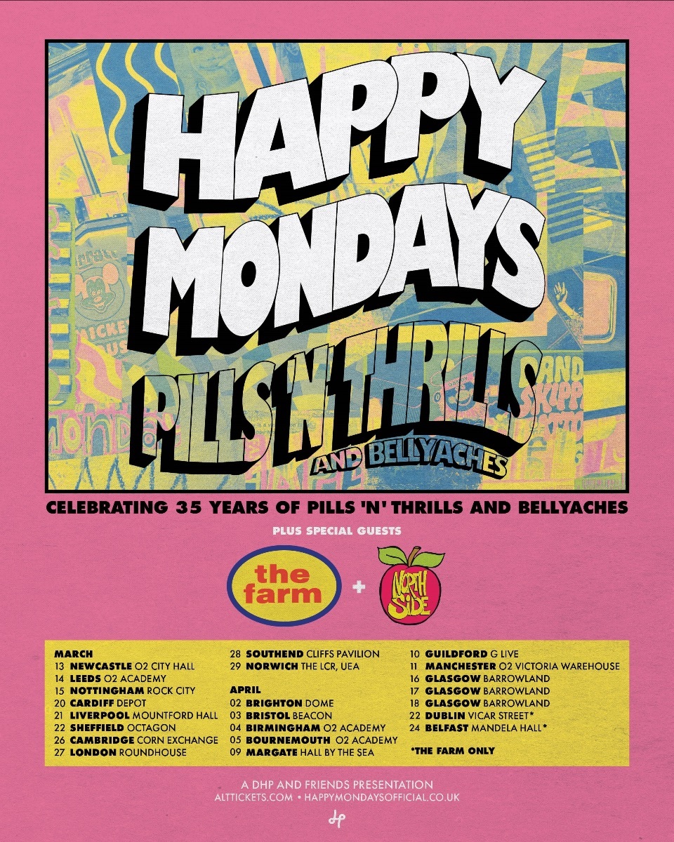 Ahead of the 35th anniversary of their classic album ‘Pills ‘n’ Thrills And Bellyaches’, the Happy Mondays have confirmed a 22-date tour for March and April 2026.