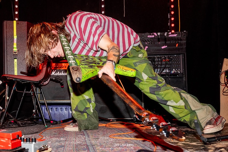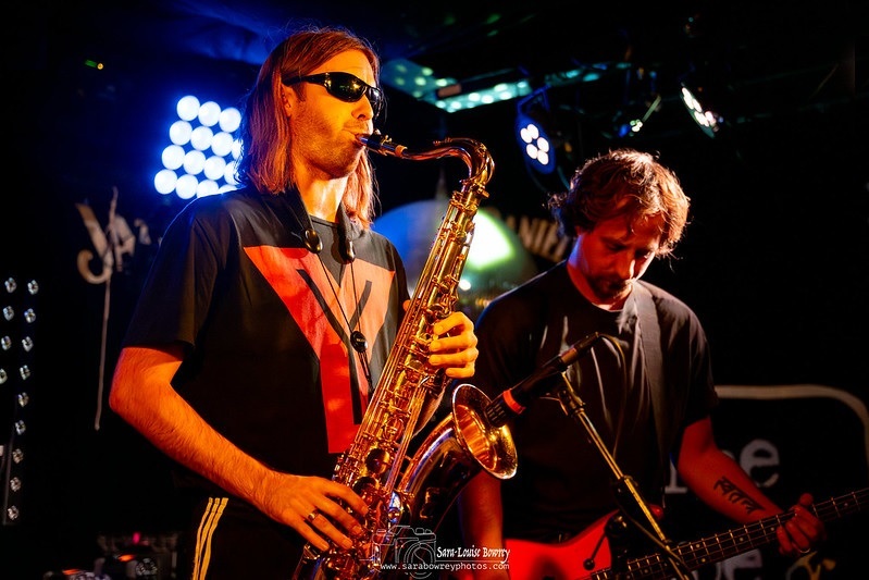 Kicking off with ‘Duplicate’, Y set the scene for some unbridled chaos. The guitar is discordant, with guitarist Adam shredding throughout the number. The crowd at this point started to divide, with people on the right side of the room two stepping and forming a sort of mosh pit, so I had to take solace in the left side of the room so I could continue to take notes. Followed closely by ‘Mav 8’, where the foundation of the bass and drum is pure groove, scored beautifully with a sax lead and a guitar drenched in effects sounding almost percussive.