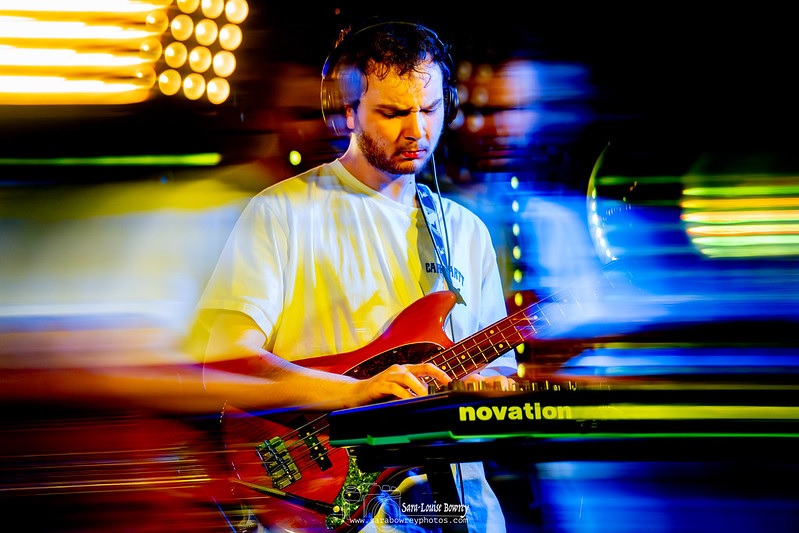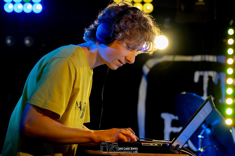 ‘Wing!’ (stylized in lower case) were the third group of the night, led by producer ‘Wing!’ and their band – Kai Charlton (bass/synth), and Joe Killik (drums). The first thing that stuck out was the fact that they were wearing over-ear headphones – seemingly uninterested in the crowd and only tuned in to themselves and each other. Their first song ‘Let The Rest Go’ had elements of trip-hop and jungle but was fused with ambient loops that gave their set a meditative overtone. The track ‘Well I Guess Not’ is a continuation of their trip-hop elements, mixing in sampled vocals. The kick and bass are so well timed you could be convinced it was a trigger.