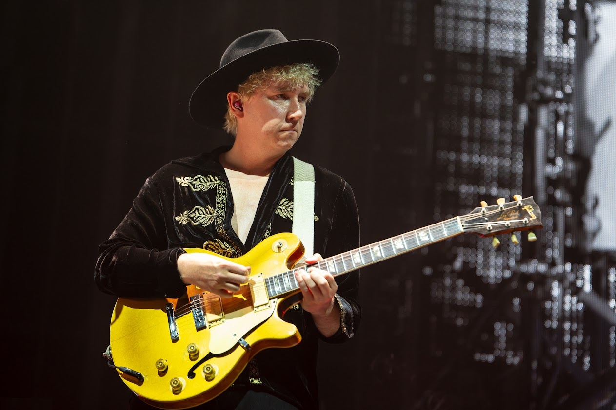 The K’s entered the stage at 7.50pm to a recording of radio messages regarding the recent success of their second album ‘Pretty On The Internet’, landing at number one in the Official UK Albums Chart. The four-piece line-up of Jamie (lead vocals/guitars), Ryan (lead guitar/backing vocals), Dexter (bass guitar), and Nathan (drums) are joined by two additional musicians: a fourth guitarist and a keyboard player. For tonight’s eight-song, 38-minute set, they start with ‘Before I Hit The Floor’, which is the opening track from their chart-topping album. Like most of the songs from tonight’s set, the vocals get lost in the mix, unfortunately. The drums are thumping and the guitars are rocking. Still, this doesn’t deter the younger members of the audience, as they are having a great time. “Thank you very much, Brighton. We are called the K’s. Has anyone seen us before?” says Jamie after the set opener.