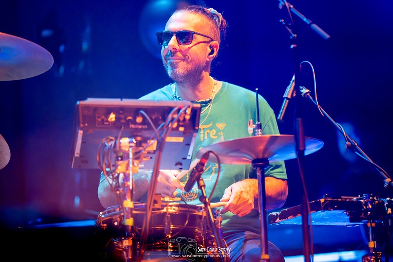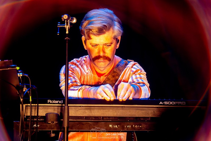 As John wanders off stage for a brief moment, the band tune back up the night’s proceedings with ‘All That School For Nothing’, gradually building back up a wall of synth funk before John returns, this time, donning a long black cape. The fan-favourite ‘Black Belt’ from ‘Pale Green Ghosts’ takes a very sleazy tone, with some warm synth textures in between verses, while its smooth transition into ‘Marz’, one of my dad’s favourite tracks, leads to a surprisingly effective rearrangement. Instead of the macabre soft rock of the original, we are treated with a more progressive electronic feel that the likes of Isao Tomita or Jean-Michel Jarre would have conjured up.