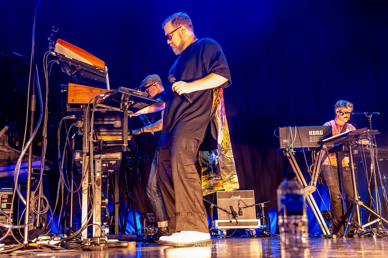 Before long, John returns, albeit via one last costume change, now wearing a blue surplice, for a two-song encore that ends the evening on a high. First, we have the penultimate track from ‘The Art Of The Lie’, entitled ‘Laura Lou’, which sees John standing solely at a synthesizer, employing some warm vocoded vocals, in a spacious yet chilling atmosphere. John gives us one last goodbye before heading into the best song of the night, and my favourite John Grant song as a whole, ‘GMF’ (which stands for Greatest Motherf**ker). This track is one of the best examples of self-analysis, love and acceptance with the lyric “Don’t forget, you could be laughing 65% more of the time” echoing through the Brighton Dome, whilst the LEDs on the synthesizer handled by the band throughout the night spelling out “GMF” in big, bright red lettering. As the final notes of the song drew the show to a close, the crowd began to dissipate, waving goodbye to their beloved synthpop troubadour.