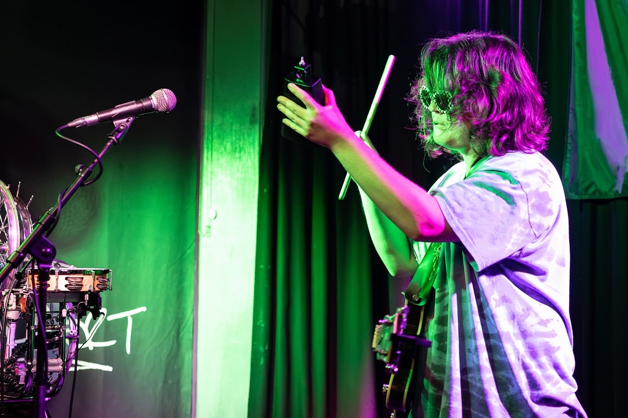 Christian Le Surf was the perfect artist to open Truax’s set, with a keen group of fans who surrounded the stage, he opened with, “I usually have loopers and effects boards, usually with songs, but I thought in all things good and quirky I’m going to do 30 minutes of improv only with no songs”. Inspired by Truax, he was taking a no holds barred- boundary-pushing approach to the set. “There are no songs. This is one 30 minute jam on the loop pedal.” With a tie-dye top, sunglasses and socks to feel the vibration of the music, he embodied every note.