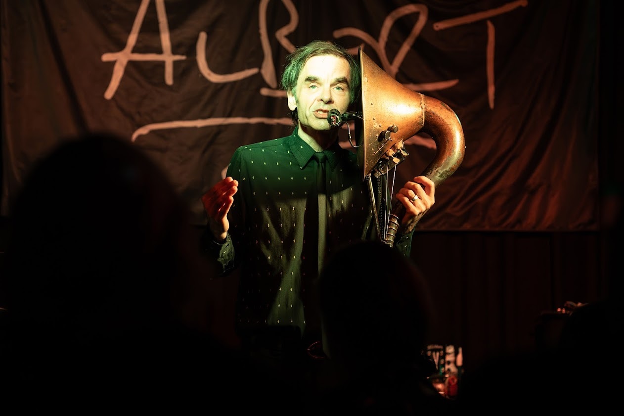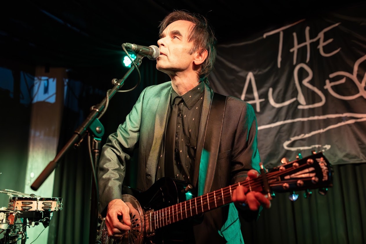 Thomas has the power to transform any room he’s in, into a surreal Avant-Garde space and tonight at the iconic Prince Albert the sound clarity and lighting in the venue was perfect to emphasise the heavier aspects of his sound – to engulf the room in his world and crisp and clear and resonant enough to highlight the deeply moving and existential aspects of his his timeless poetically evocative songs about insects, trees, technology, love, and a lifelong fascination with the Moon. Having seen him in 2023 at the Green Door Store in Brighton and Fitzroy House in Lewes, (Review HERE) we knew we were about to enter into another universe.