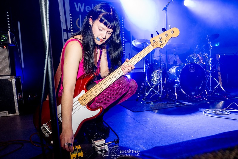 There’s a frivolity to tonight’s set and they kick off with 2025 single ‘Heaven’, the jaunty vocals of which remind me of Sparks’ ‘Amateur Hour’ until the skippy beat gets going. On its conclusion the band are rewarded with much appreciation which is often reserved for the headliners. They, the audience, and myself can already see that Slag have come on in leaps and bounds of late and are becoming a force to reckon with on the local scene. The first of a quartet of unreleased tracks comes next, this being ‘Private Gyno’ which is a slowish number with jaunty guitar action and drums, and for the first time this evening Amelie’s vocals remind me of The Pretenders’ Chrissie Hynde. The bass and drums led ‘Losing’ is their next choice. This indie rocker has another powerful vocal delivery. ‘Still Here’ is tune four and it offers more jangly guitar action along with notable keys and drumbeats. It’s a tune which increases with intensity and all the better for it.