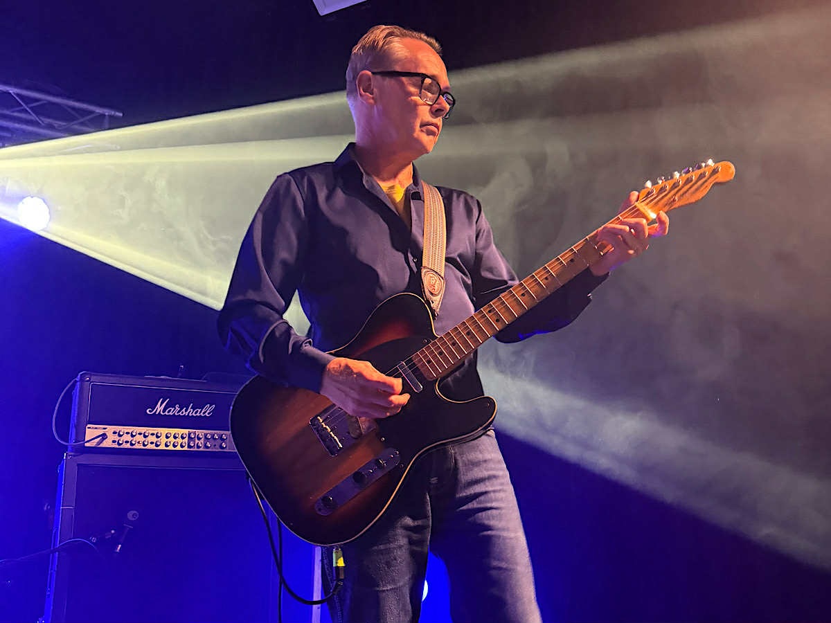 At 8:18pm the lights dimmed. Applause rang out, and the start of Joe ’Bean’ Esposito’s ‘You’re The Best’ (as featured in the ‘The Karate Kid’ movie from 1984) was played through the venue’s speakers. The band soon made their way onto the stage to further applause. Lead vocalist Mark approached his mic, saying, “Hello everybody, how are you? We are The Bluetones, and we’re going to sing you some songs in a Bluetones style.” Having not seen the band for so long, my initial thought was that they’ve aged (obviously, as we all have), but what’s unusual for a band that’s still around after 32 years since formation is that the lineup is still the same. From the opening song, ‘Bluetonic’ (their second single and No.19 hit from October 1995), it’s clear that they sound just as good as I remember them from all those years ago. The only real difference now is that Mark plays guitar as well as singing the vocals. He performs acoustically for most of the night, although a switch to electric does occur for a few songs. After ‘Bluetonic’ the band seamlessly transitioned into their 2010 release, ‘A New Athens.’