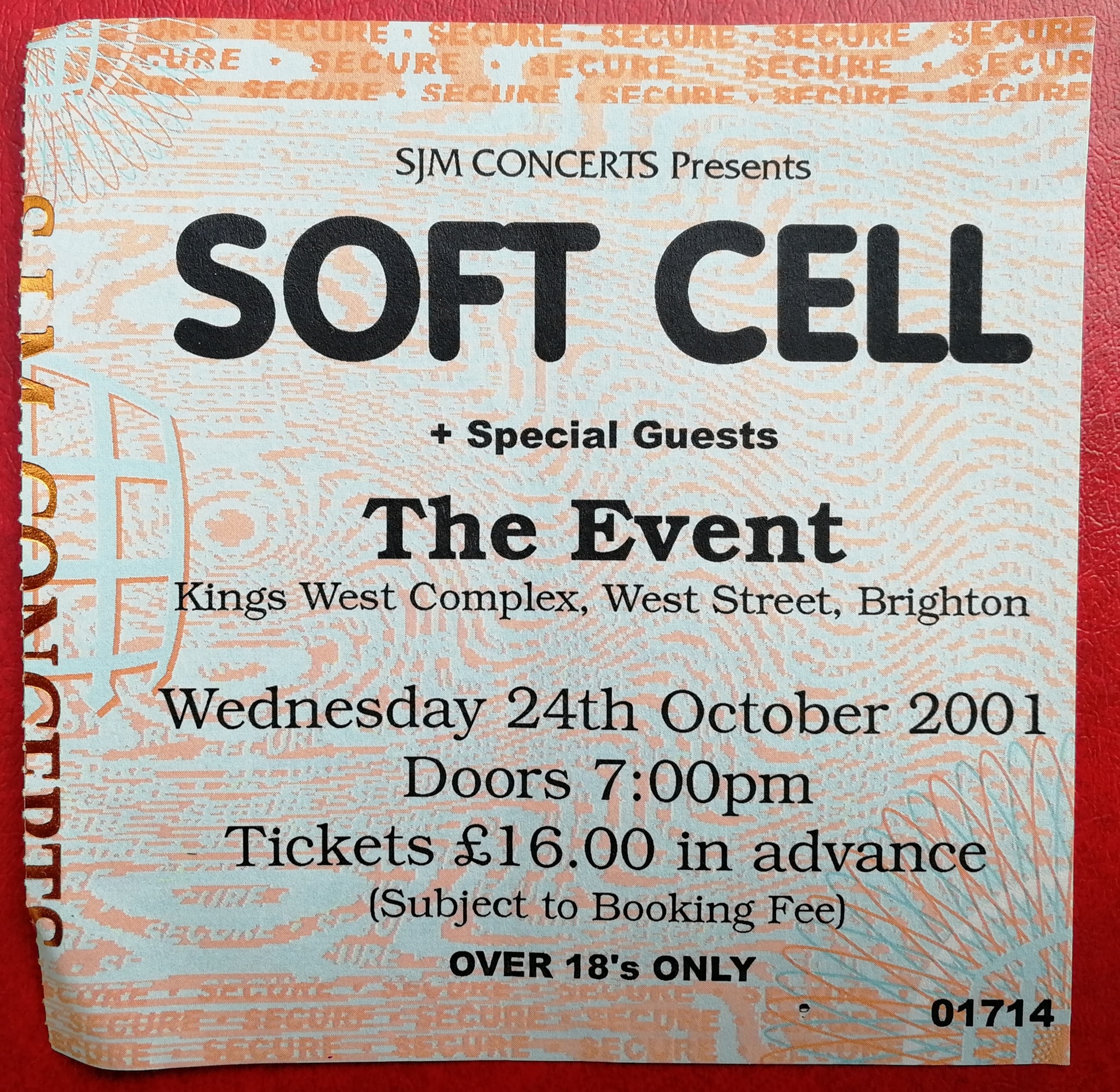 As far as I can recall, Soft Cell only performed live in Brighton on one occasion and thankfully I was there. This was at The Event venue at the bottom of West Street, which down the years has also been know as the Top Rank Suite and PRYZM. Their concert took place 24 years ago on Wednesday 24th October 2001 and I can even remember where I saw standing and dancing!