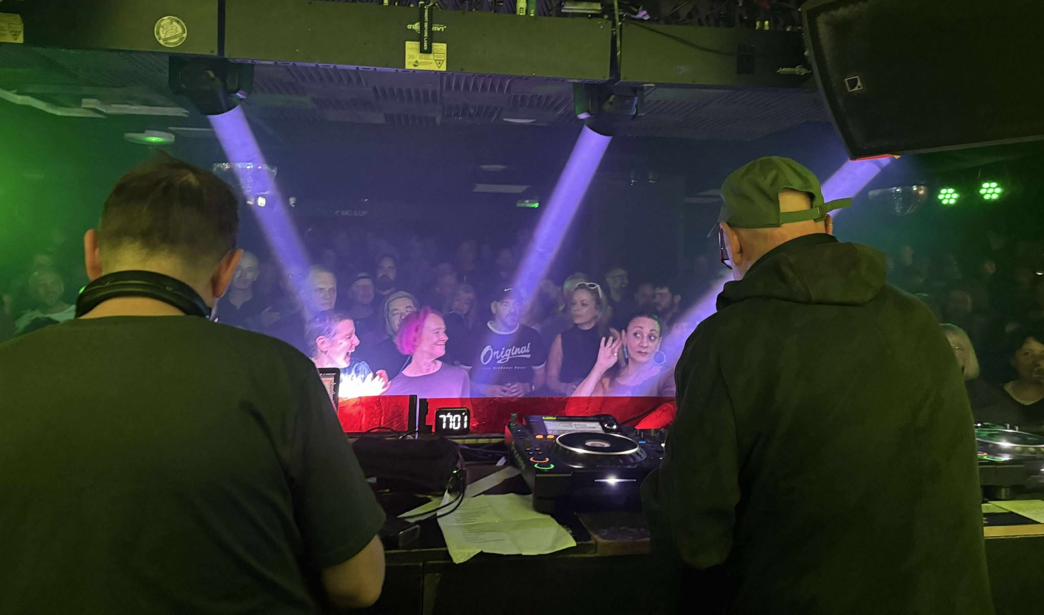 On the floor, the atmosphere mirrors the freedom of the late 80’s and early 90’s rave era that welcomed the group. There’s a refreshing absence of self consciousness amongst these ravers, the crowd moves with abandon, allowing their inhibitions to be carried away in sound and movement, there is no place for judgement here. This being a stark contrast from younger electronic music crowds I find myself in, who can’t seem to shake the social-media-induced-self-awareness and perform what I call the ‘post-covid shuffle’: an awkward formulaic side to side step balanced with the occasional gun finger in the air.