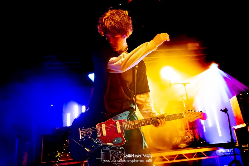 Let’s face it, Lemonsuckr are the band of the moment right now and anyone who has recently seen them live will understand why. The band comprise Guy Ferris (vocals, tambourine, cowbell), Oscar Post (guitar, backing vocals), Ollie Thomas (guitar, backing vocals), Jake Andrews (bass) and Matt Saunders (drums, presets) and they have filled the Dust venue to capacity this afternoon. From the very off one of their guitarists pops off stage and has a wander through the crowd, which takes some doing considering how rammed it is. This tune is ‘Dead Disco’ which is from their latest ‘H.E.A.T.’ EP, which gets delved into during this set. Next up is ‘Instant Kinks’ which is an immediate tune to get the punters further on board, and it’s the turn of frontman Guy to get into the crowd. ‘Sedated’ is up next and as you would expect is a relaxing number…..to begin with that is with the slow keys backing, but then the booming dance beat kicks in and then there’s some enjoyable Arabic style riffage to be had and Guy is sounding not unlike IDLES Joe Talbot on this one.