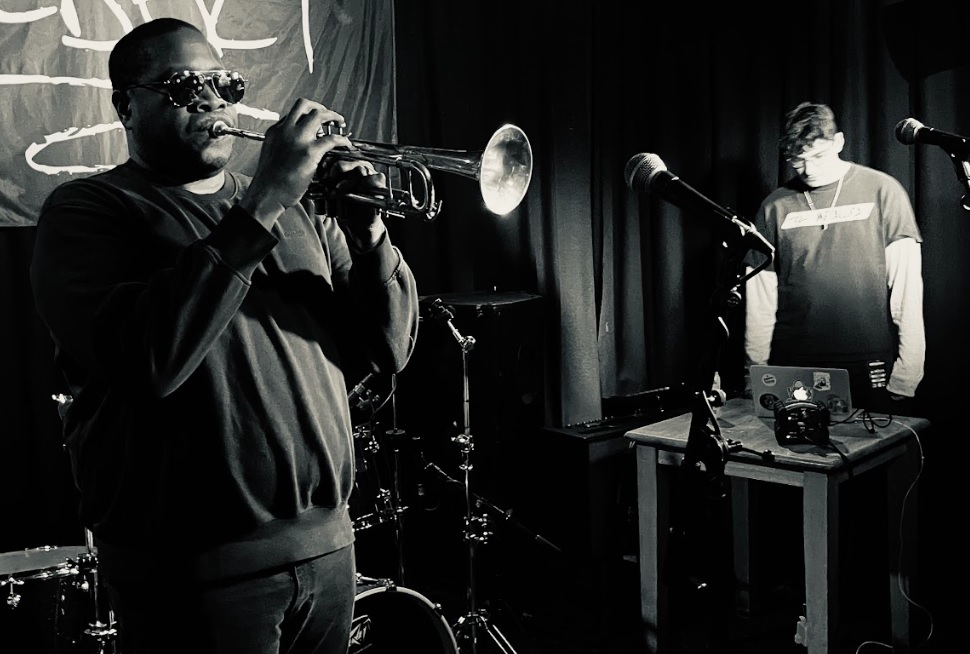 Pan Amsterdam is the musical persona of Leron Thomas, a New York based Rapper and Jazz trumpeter, he blends experimental hip hop, jazz, funk and electronic music to make some most excellent sweet sweet music for our ears.  The stage set up was quick, simply two microphones, one for vocals and one trumpet, plus a small wooden table with a laptop helmed by Finlay Harrison (aka DJ Fin Shady). Pan himself dressed casually in a black sweater and some very cool shades, he did his sound checks and said “That feels good” and laughed, such an infectious laugh, one that we heard many times throughout the set. Those beats from Fin kicked in, and Pan took up position with his trumpet and we were away. The set started with ‘Confines’ the title track of his latest 2025 album, a slow and chilled introduction to proceedings in which Pan would walk between his two microphones to either deliver his rap lyrics or play the trumpet. “How about some ‘Rigatoni’ ?” he asked the crowd telling us “Pan Amsterdam is a foodie” whilst patting his stomach, “Luther Vandross” he added laughing. I really liked that one, I also really loved the way Pan would casually shoot the breeze and chat into the next song “We’ve had our ‘Rigatoni’, so now I want some dessert, let’s have some ‘Carrot Cake’”.