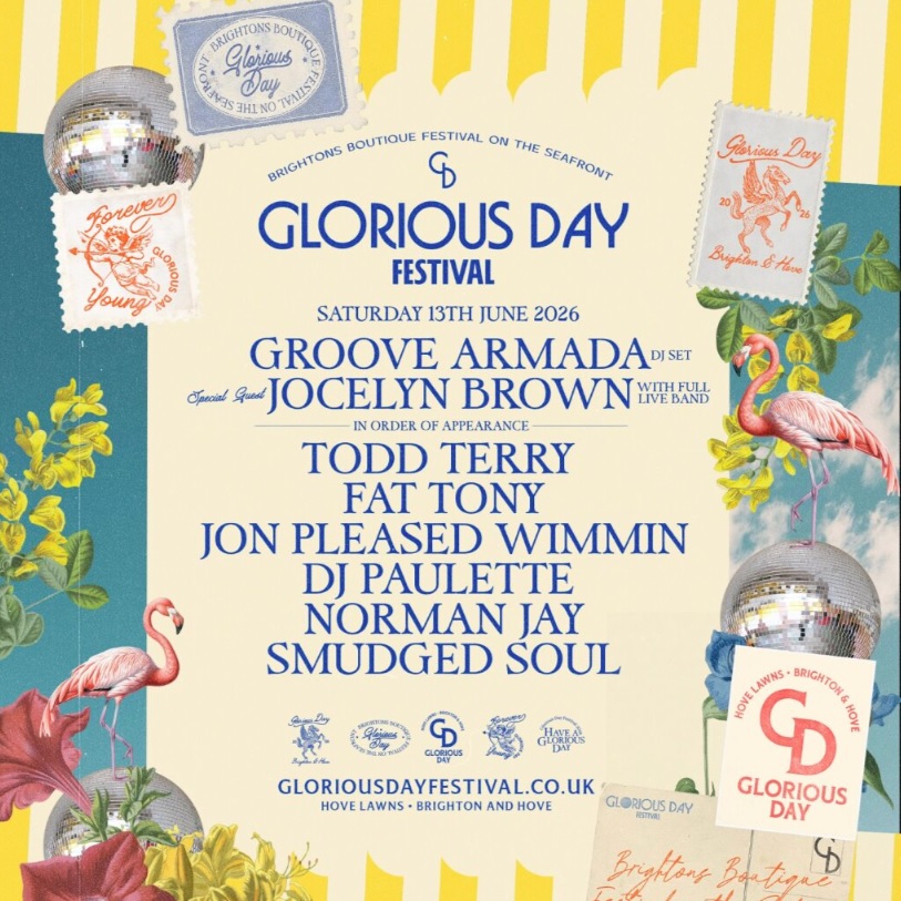 Brighton & Hove’s boutique celebration of House, Disco, Funk & Soul returns to the seafront next summer, as Glorious Day Festival unveils its 2026 lineup — led by Groove Armada (DJ Set) and soul legend Jocelyn Brown with her full live band.