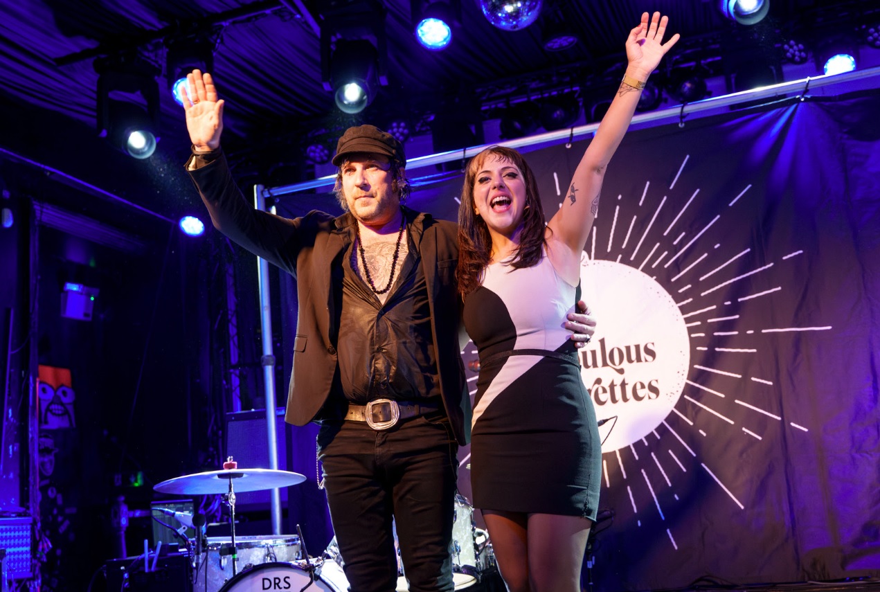 Special guests for the ‘Come And Get Some Tour’ are The Courettes, who are also known as ‘The Fabulous Courettes’. They are a husband and wife team-up of Martin and Flavia Couri, who operate as a guitar and drum duo a la White Stripes. The Courettes have amalgamated a unique blend of garage rock, doo-wop, blues and 60s pop that’s remained a strong component of their sound for the best part of a decade. We are in their company for a mere 53 minutes (from 7:58pm to 8:51pm) but in that time the husband and wife duo still manage to rattle off 14 tunes!