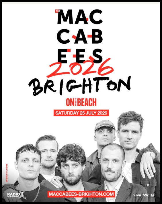 The Maccabbes live on Brighton Beach – Saturday 25th July 2026 (event runs from 13:00 – 22:30).