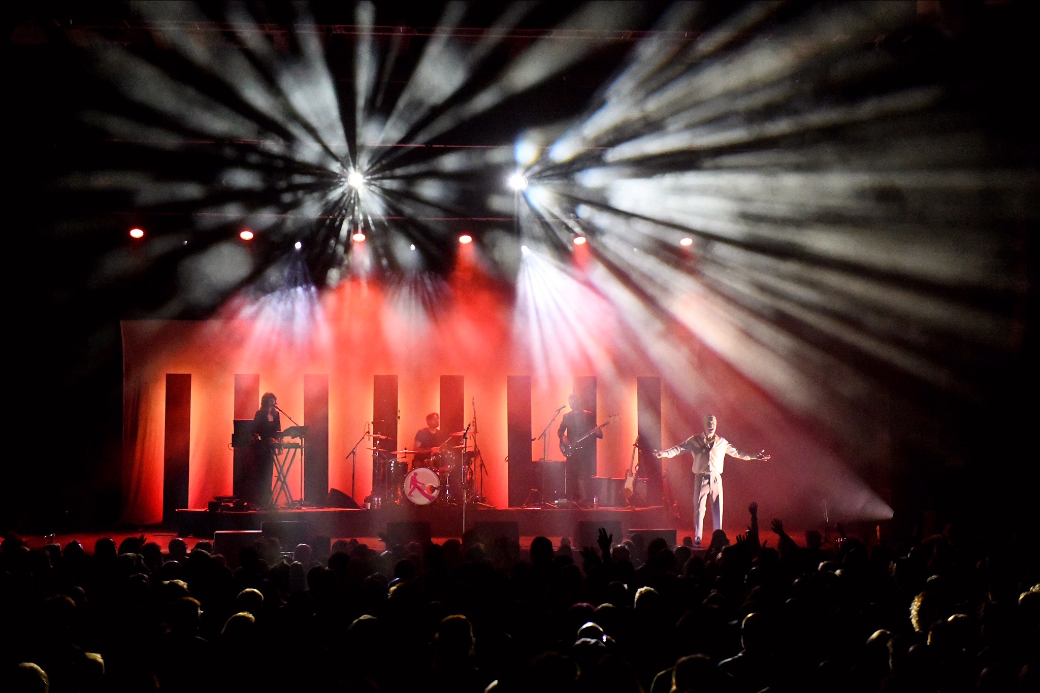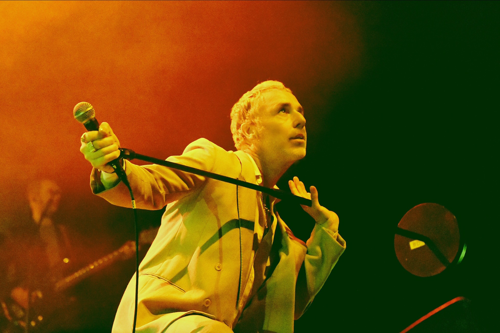 It takes him almost an hour to say anything to the audience but there’s still an intimacy created by the endless moves and poses. He leaves all the talking to his sardonically witty lyrics, which often echo his dad’s baroque flights of fancy.