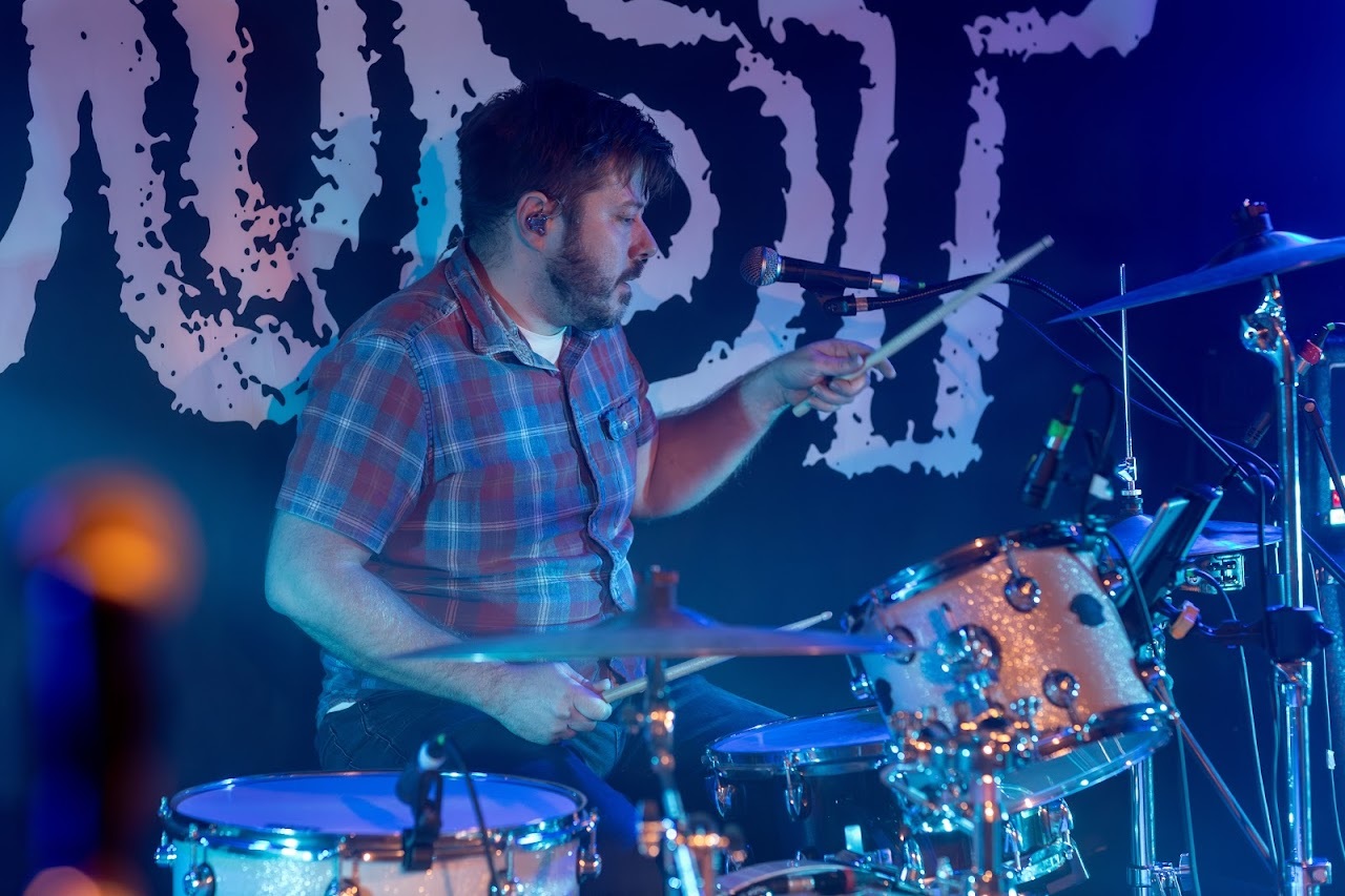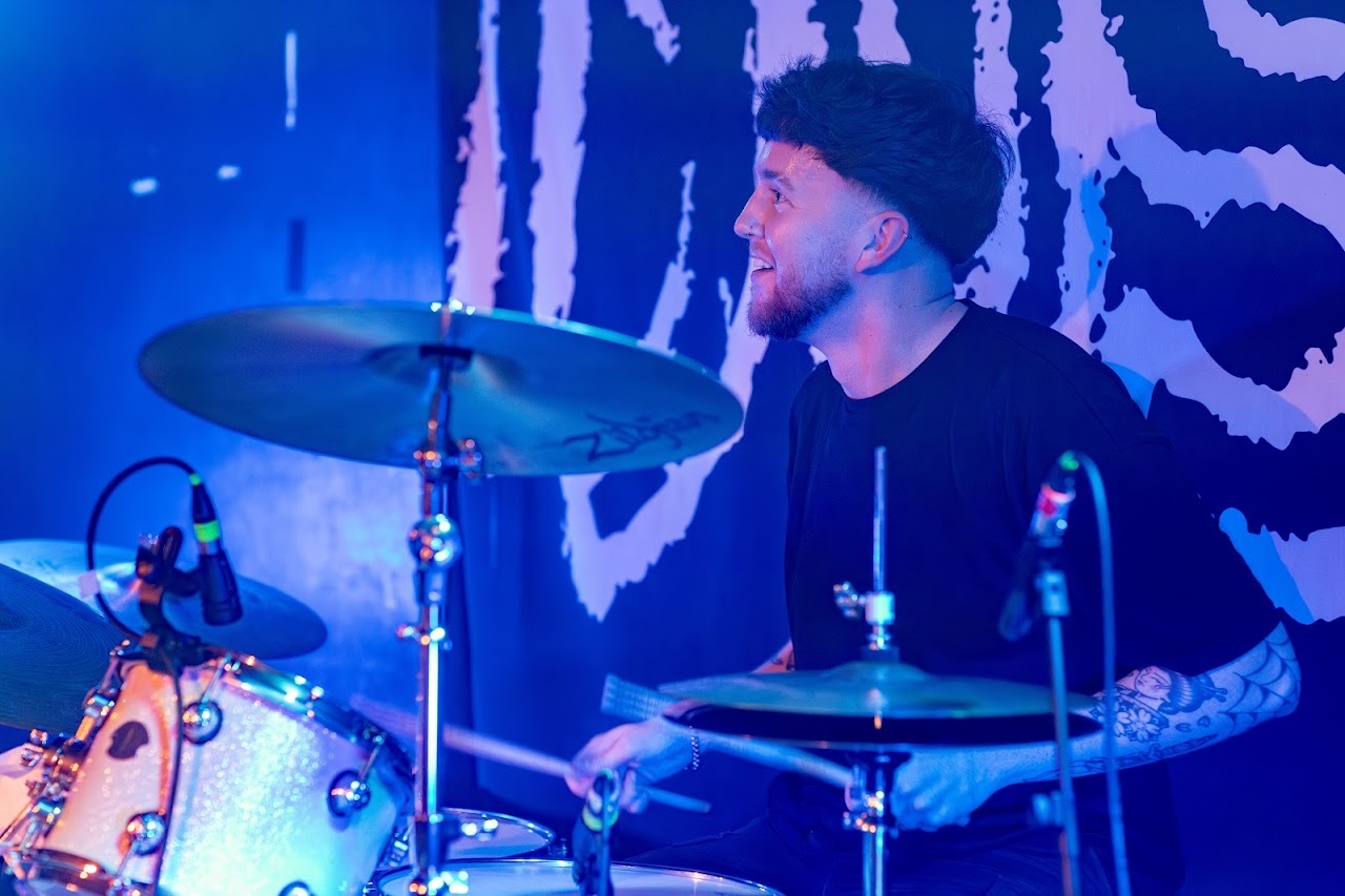 Third single ‘Normal People’ is played next, another with a bass intro. During the song, Charlie has another issue. One of his cymbals has flipped up and is stuck in an upright position. He finds this highly amusing, as do some others, including myself, that have spotted it. Charlie rectifies the issue for the final song of the planned 45-minute set. James says, “Thanks for coming out. This is going to be our last song, but it’s a good song, though.” They play the second single and crowd favourite ‘When The Lights Come On’ with the audience clapping along to the instrumental break with plenty of enthusiasm. At the end of the song there’s a quick selfie from the trio with the audience pictured in the background.