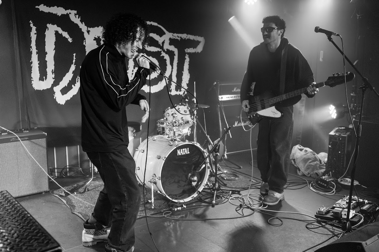 They now have a solid line-up with mainstays James Neighbour (lead vocals, lead guitar) and Charlie Heaseman (drums), joined by Sam Raymer (bass guitar, backing vocals). They played a good number of local gigs in 2024, as well as taking in their first London gig, and releasing two further singles. More singles followed in 2025, that included some national airplay by Radio X’s John Kennedy. They also released their first EP, ‘Pouch Core’, which has been well received, notching up over 50,000 streams within the first five weeks of release. They’ve played fewer gigs this year, although they did make their first festival appearance at Y Not Festival in Derbyshire, sharing the same stage as other bright new acts Pastel and Marseille, as well as fellow Brightonians: Crysometimes, Cows, and Canned Pineapple. The festival appearance was the last time Bacci Pouch performed live to a paying audience, until now so it’s good to have them back tonight at Dust. The gig has been billed as their biggest to date and has been put on by ‘Scruff Of The Neck’ promoters.