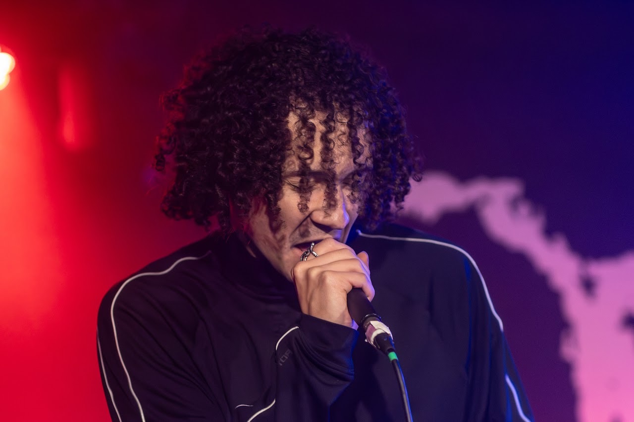 Dread FM is a solo project of talented local rapper Flynn Murray, although for live shows including tonight we have the addition of bass player Max Stevens. Flynn blends together alternative hip-hop with electronic and rock. Dread FM are friends of tonight’s headliners Bacci Pouch, having appeared on shows together in the past and kindly stepped in as a late replacement for alternative rock band Not Right Here who pulled out of the show due to illness. Flynn and Max are ready to go at 8:24pm. The backing track kicks in and off we go with slick rapping from Flynn and some heavy bass playing from Max on opener ‘The Hit’, one of three tracks included in the set that is lifted from Dread FM’s debut album ‘Who Killed The Vibe’. Flynn is full of energy despite hurting his back prior to the gig. The frontman even asks us to “make some noise if you’ve hurt your back”. The quick-fire lyrics continue on ‘Sunset 1’.