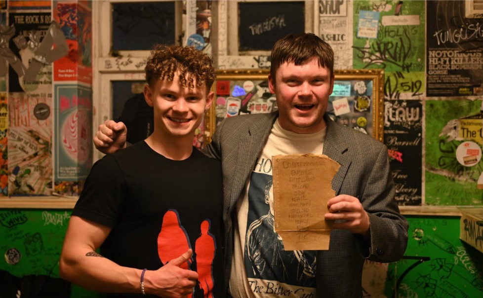 Rudi Banfield (left) with Lewis Duffin of Hotel Lux at The Hope & Ruin, Brighton 28.11.25 (pic Ella Hancock)