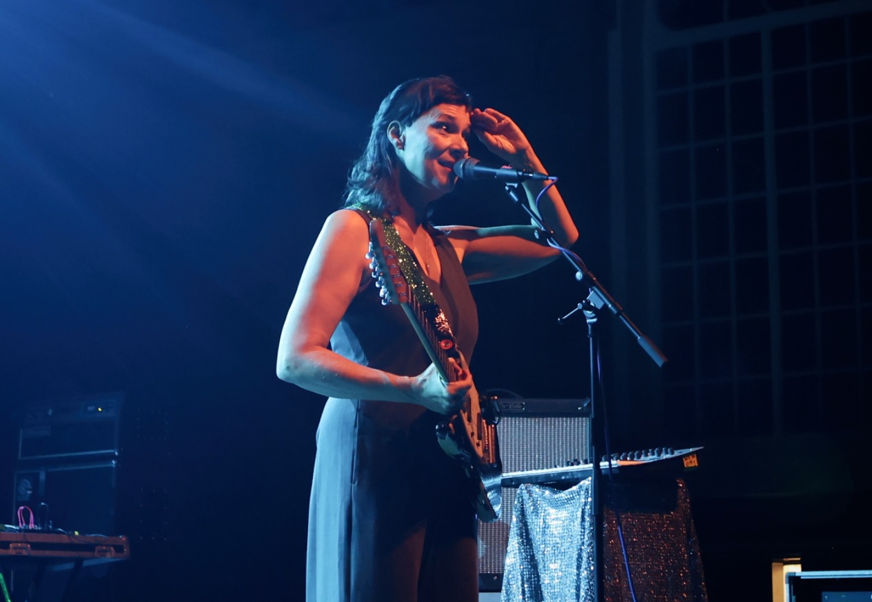 The darting synths of ‘Mystical Plosives’ ricochet around the room, announcing themselves before bleeding into the first true track, ‘Aerial Troubles.’ It’s a loop of hypnotic repetition, offset by sinister lyrics and bookended by the same synths. “Thank you, good evening” from frontwoman Lætitia Sadier is met with “I love you” from a hall that is practically bursting at the sides.