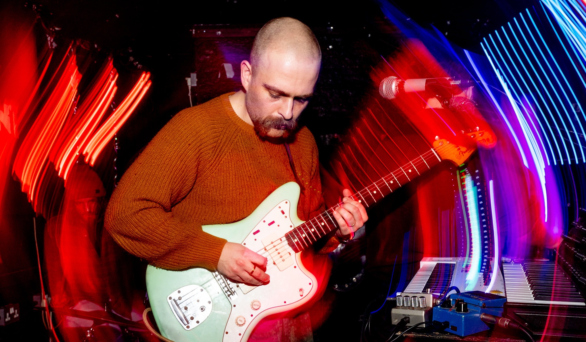 If Coco pushed the night into full dance‑floor mode, Lipworms (stylised as LIPWORMS) took that energy and took it in a techno‑psych fuzz direction. The Portsmouth four‑piece delivered a hypnotic set which saw a collision of acid techno pulse, psychedelic swirl and krautrock repetition. Their sound was noisy, industrial and strangely euphoric. It was the kind of experimental, dancefloor storm that pulls you in before you realise it’s happening. With Tom and Chris trading synths, guitar and vocals, Olly’s bass cutting through the haze, and Alex’s drumming anchoring the chaos, the electronics never swallowed the band’s live instruments; instead, everything locked together into a thick, rolling groove.