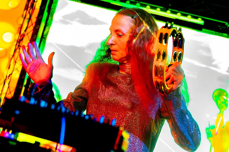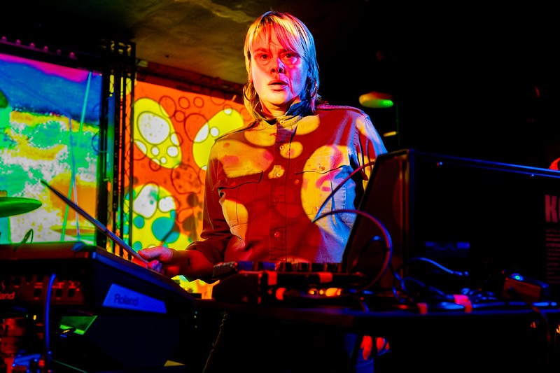 Headliners for the 2026 Lewes Psych Fest are none other than St Leonards-on-Sea based machine rock supergroup outfit Aircooled, who are a five piece disco rock band made up of a handful of disparate and eclectic musicians. These being Justin Welch (Piroshka, Elastica, Suede, The Jesus And Mary Chain) on drums and electronic presets; Oliver Cherer (Gilroy Mere, Dollboy, Miki Berenyi Trio) on vocals, Reverend guitar, and Korg MS2000 synth; Katharine Wallinger (Wedding Present, Viv Albertine) on Fender Mustang bass; Riz Maslen (Neotropic, FSOL) on vocals, synth, Boss & other electronics, flute, and tambourine; and local artist Mew on Korg synth, Roland drumpads, and tambourine. This evening they are also joined by their friend Helen Edwards on clarinet, Roland drumpads, cowbell, and very briefly on backing vocals.