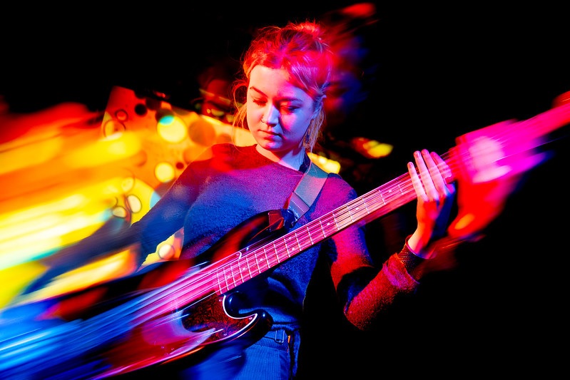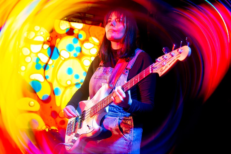 Next up are a new act to me in the form of Holy Springs who are coming at us from Southampton. They comprise Neil Atkinson Jr (vocals, Fender guitar), Maria Belluci (Fender Mustang bass), Harry Atkinson (Fender guitar), and Susie Sims (drums with fixed tambourine, backing vocals). In 2022 the band released their debut LP titled ‘E.A.T’ and last August they followed it up with the release of ‘Outside’. For these they masterfully blended their love of shoegaze guitars and lo-fi psychedelia, whilst peeling back various layers in order to focus directly on their songwriting and primary instrumental parts whilst remaining true to their own sound. This evening the quartet give us seven tunes across a 29 minute set, with four from the recent record and the remaining trio culled from their 2022 release.