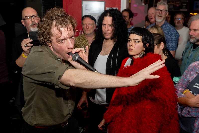 The Sick Man Of Europe have a distinctly monochrome outlook, none more so with the repetitive Krautrock motorik beats of ‘Obsolete’ with its repeated “Retire me, make me obsolete” lyrics. The likes of AK/DK and Sigue Sigue Sputnik spring to mind here. The unreleased ‘Apathy’ is selection three and the earworm lyrics for me from this (as far as I could tell) were “Don’t wanna leave ya anything”. Again the Joy Division sound is evident here. Each note counts and is played with absolute precision and conviction. Their penultimate selection is ‘Profane Not Profound’ with its atmospheric intro and often repeated “The modern world makes me sick; Let’s destroy it” lyrics. They sign off with ‘Transactional’ with its repeated “I’m fear, I’m here; I’m alive, it’s time” lines. The track reminds me of The Knack’s ‘My Shaona’ meets early The Cure and some Joy Division. Suffice to say, once again they absolutely nailed it! The best received band on the night thus far, and they no doubt have found many new friends this evening…whoever they are!