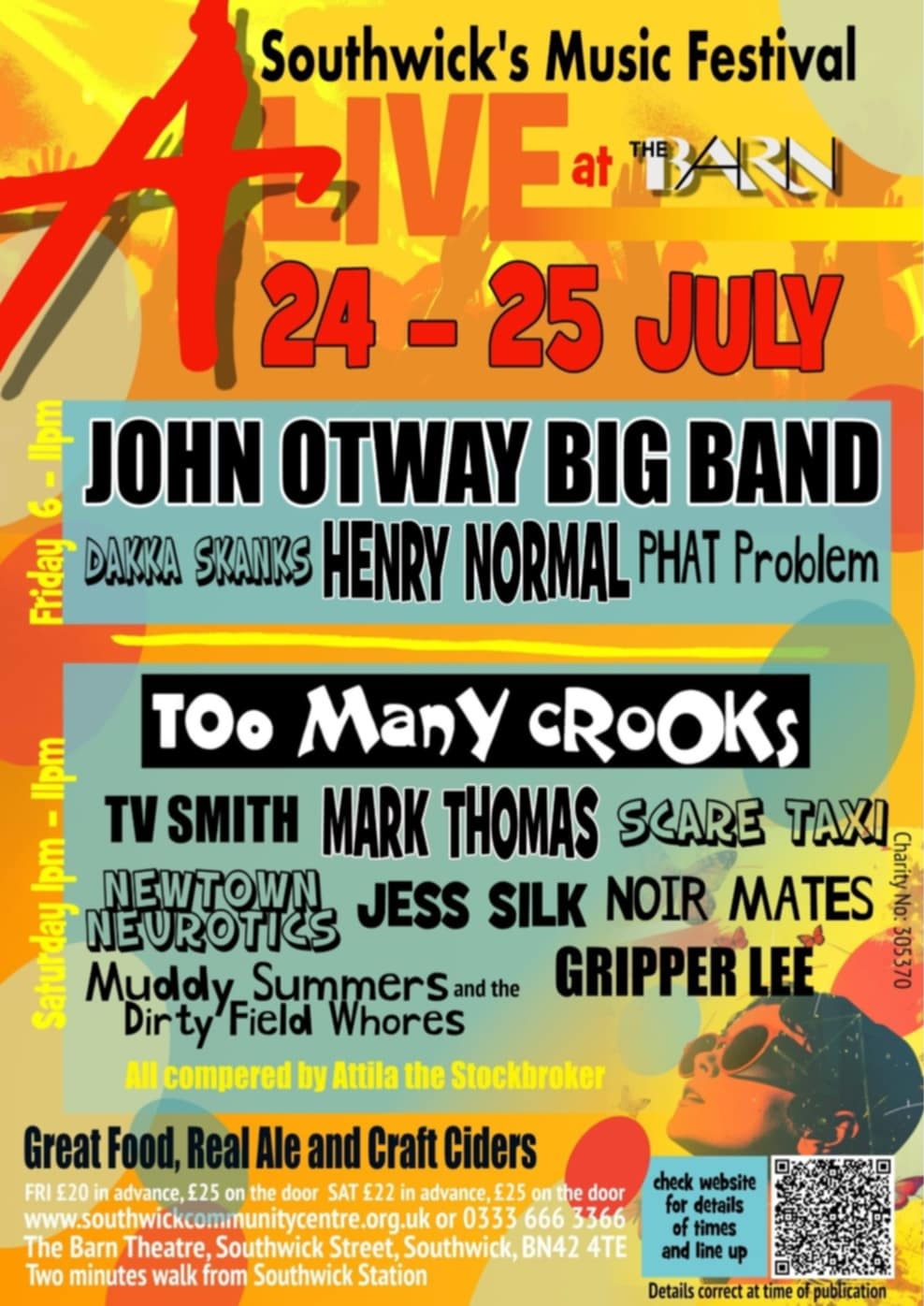 The action on Friday night kicks off from 6.30pm with Phat Problem, Henry Normal, Dakka Skanks and a huge headline set from the John Otway Big Band. As well as a bar there will be homemade food available to purchase from 6–10pm!