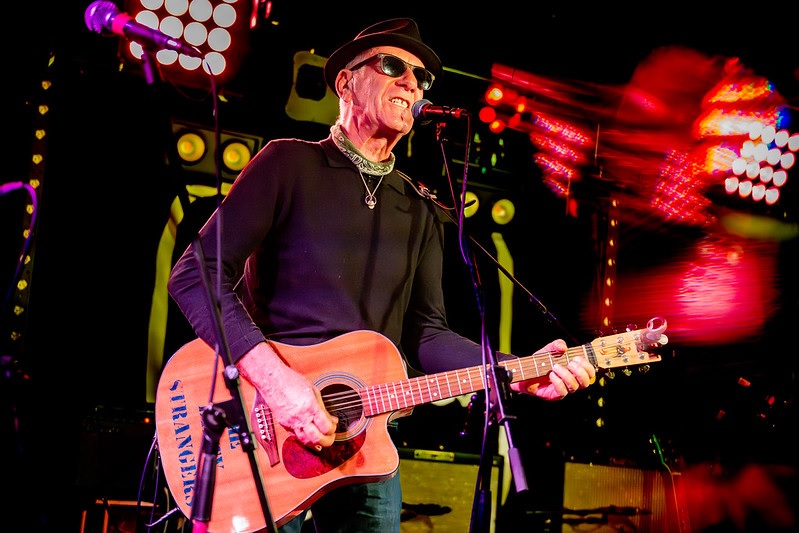 Support this evening came from Alan Clayton aka Dirty Al who is the leader of the Dirty Strangers, who, as a band, carry the torch for rootsy Rock’N’Roll as spearheaded by Eddie Cochran, Gene Vincent & Chuck Berry. Tonight it’s just a solo set from diamond geezer Al, who is on vocals and acoustic guitar for 31 minutes from 8:00pm to 8:31pm. During that time he sings songs from his back catalogue(including recent Classic Rock Readers Poll favourite ‘Hunter’s Moon’.