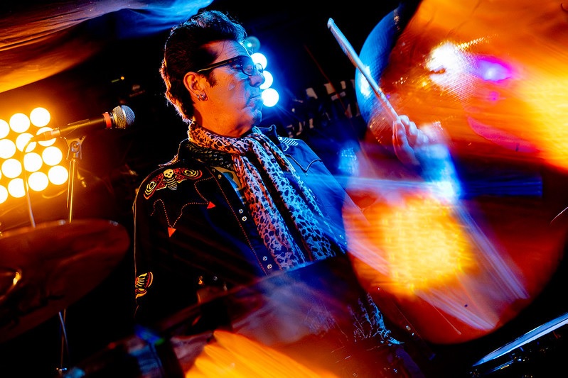 We were in for a treat next as the guys played an unreleased tune written by Neal X, going by the title of ‘California Beachhouse’. It’s a swingin’ tune and unmistakably sounding where Sigue Sigue Sputnik meets rockabilly. Let’s hope that this sees the light of day pretty soon, as it warrants it. Neal then invites Spandau Ballet’s Steve Norman to the stage for a tune made famous in 1960 by Billy Fury, this being the slower paced summer vibed ‘Wonderous Place’, which sees Steve taking care of saxophone duties. This is my second recent encounter with him, as he was part of the lineup for Mark Laff’s XGENERATIONX band, whose debut live performance we reviewed on 9th November last year. Read that review HERE.