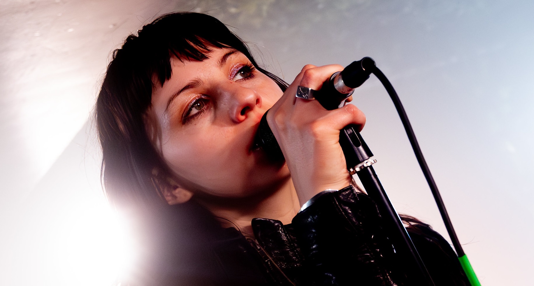 At 9:25pm Daltons suddenly becomes awash with copious amounts of dry ice, and I really mean massive smoke machine proportions. We are located central front, but the trio are merely shadows moving through the darkness! It’s very cinematic! Talk about setting the scene or what! When I do manage to catch a glimpse of Stella, courtesy of the four double strip lights at the rear of the stage, she reminds me of a modern day Chrissie Hynde of Pretenders fame, as well as Josephine Orme aka Heartworms. It’s a cool sultry look that works very well. There’s a screechy style intro that announces to all present that something’s going to happen, and then after this brief number, the trio launch into ‘Pray’ which is from Stella’s sole album thus far, this being titled ‘Eyes Of Glass’ which dropped in 2023. This has a faster beat than the opening intro and I note that there’s additional backing vocals, no doubt emanating from the keys to the rear. This too sounds like Stella, so I guess it’s Stella multi-tracked! It’s a solid start!