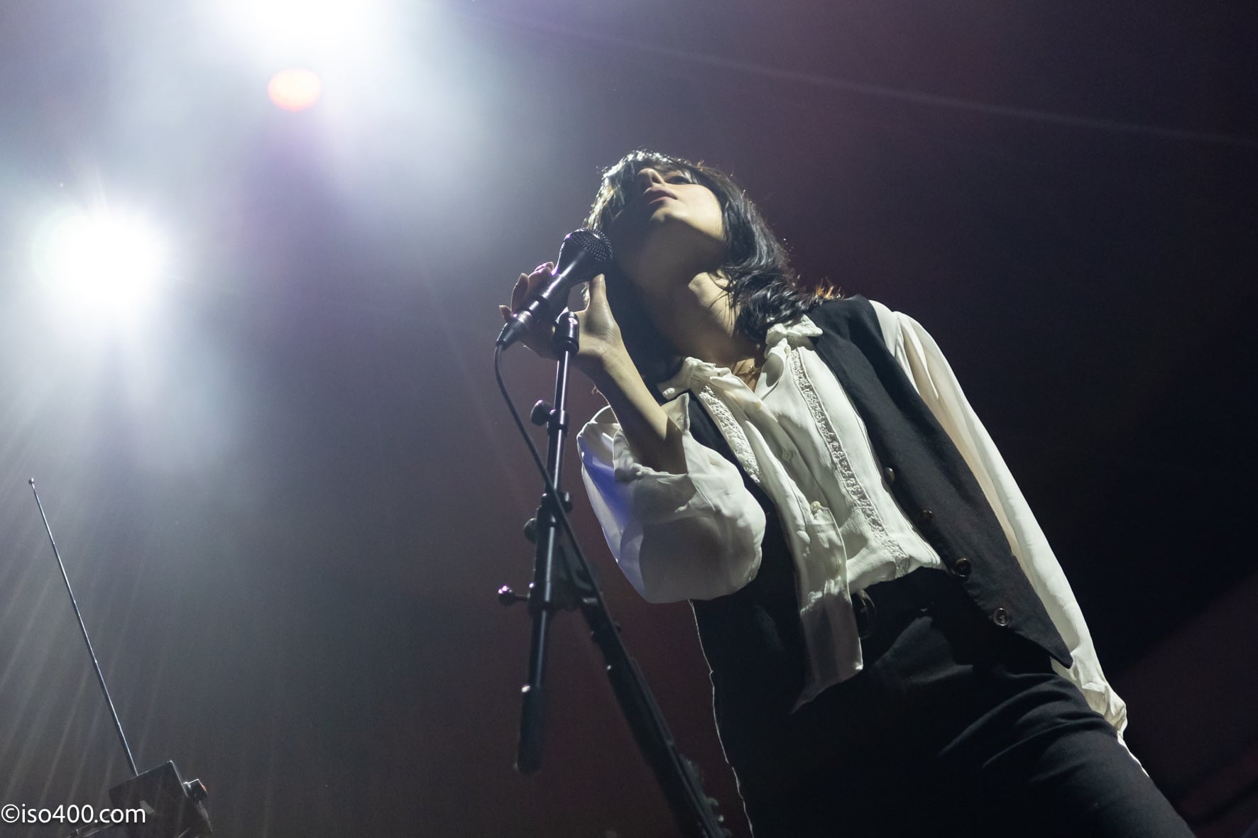 Heartworms never seems to be static in music or live stage performances. She calls upon session musicians that can assist her at each given time and this evening she is joined by just a couple of them, a drummer and a guitarist. I’m afraid I don’t know their names and they weren’t introduced. As ever, the Heartworms live interaction between Jojo and the punters is kept at a minimum and she prefers to let the music do all the talking. It’s an all-too-brief encounter this evening of only 28 minutes (from 8:01pm to 8:29pm), and in this time we are given 7 numbers, of varying styles and intensity. Jojo takes care of vocals, guitar and theremin. The male guitarist switches between two flying V’s, which always look cool to me, and the drummer impressively pounds away at his kit and I think organises the backing tracks.