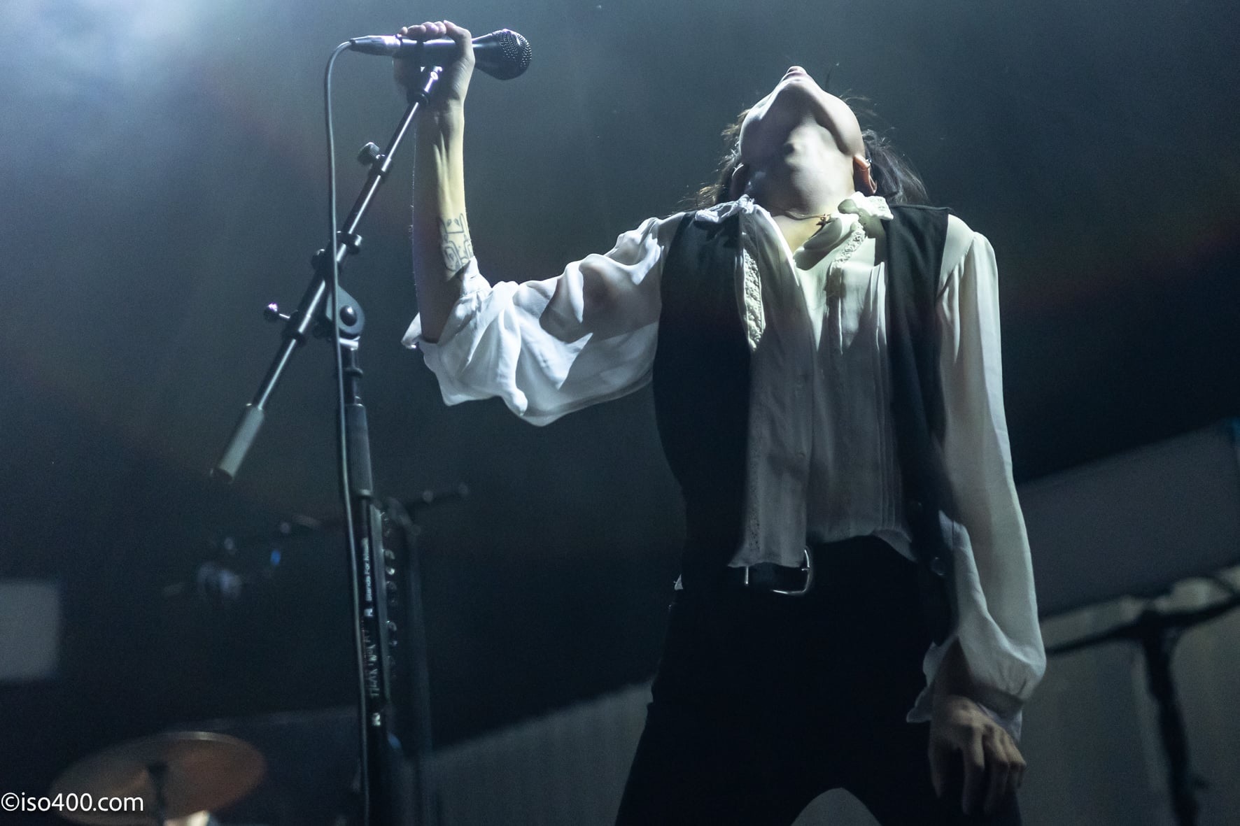 The trio commence to a sadly half-full venue and take those unaware with the unreleased demonic ‘Beat Poem’ with lines like “we are the people you buried under the floors” which are delivered through minimum stage lighting. It’s all very goth and Jojo’s body becomes animated, which grows deeper with the performing of the drumming led ‘Extraordinary Wings’ from 2025’s ‘Glutton For Punishment’ album, which culminates with the words “I don’t wish murder ’cause l got no right”. After which Jojo straps on her guitar for the first time and the banging beats of ‘Warplane’ from the same LP, fill the auditorium. She has the interest of the punters with her powerful vocals, many of which are now making their way in from the bars and street.