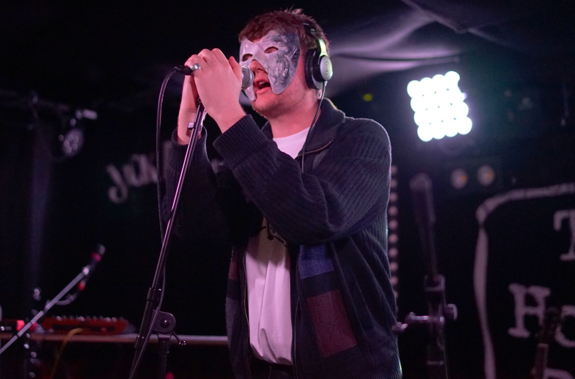 Support this evening came from the mysterious Pollyfromthedirt which is a masked chap who hails from Darlington. His name remains an undisclosed secret but his mothers name is “Polly” and she is from Darlington, which is sometimes referred to as being “in the dirt” (historically, “Darnton i’ the Dirt”), a 17th-century description of the town – hence Pollyfromthedirt. Although I understand that the most common slang name for Darlington is “Darlo”, and ‘Darlos Cowboys’ being the title of one of Pollyfromthedirt’s single releases from last year. His debut EP runs along the same field as it is titled ‘The Dirt Pt.1’.