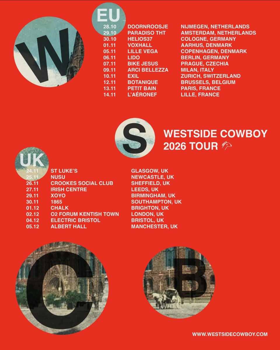 The group’s electric live shows have slingshotted them towards 1000+ cap venues before any mention of a debut album. This is establishing an immersive mythos, replete with ‘I was there’ credentials, and if-you-know-you-know moments. Last summer’s packed-out festival stages including at Glastonbury, Green Man and End of The Road are evidence of an outfit striking the core of the scene. Westside Cowboy will also appear at festivals including Green Man, Latitude, Reading and Leeds this summer.