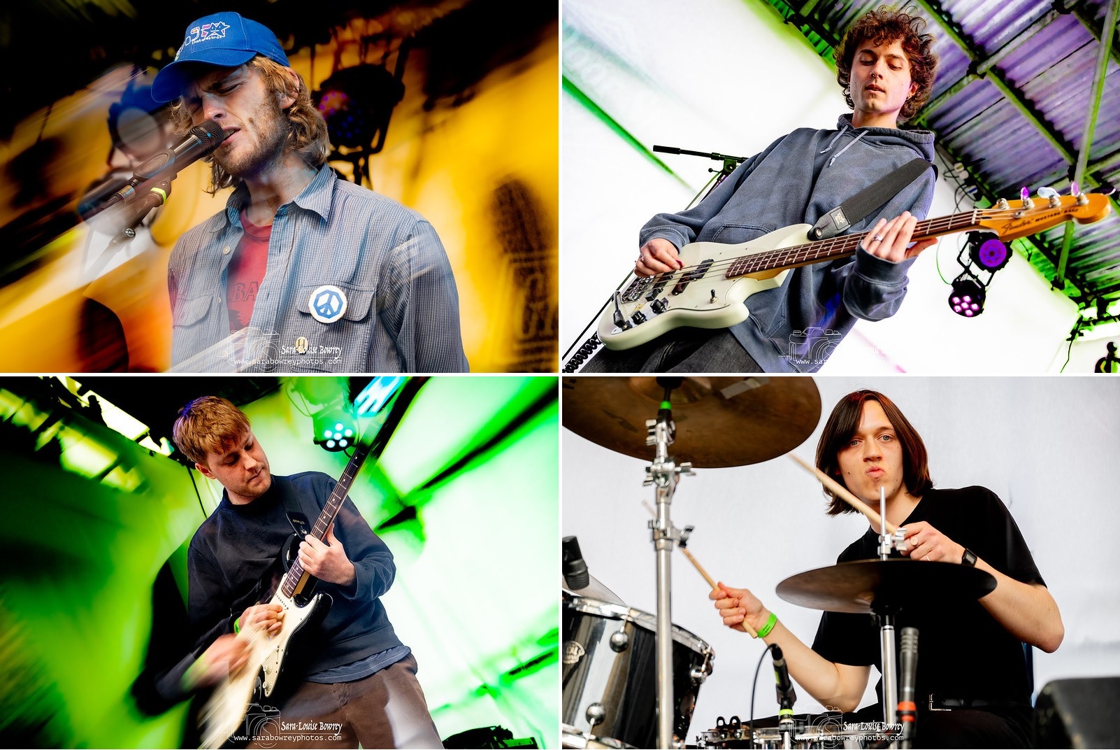 The rest of their set leans heavily on loud-quiet dynamics, with frontman Max Lambert’s presence landing as awkward yet still earning laughs. It’s unclear whether it’s a persona or genuine discomfort. After the loud/quiet lackadaisicalness of ‘Dyl Slam’ and the spiky-guitar shoutiness of ‘Sick With It’ – a track where Lambert shouts so incoherently he sounds like an off-topic street preacher – humour shines through. “We are Magda, thanks for coming to watch us… It’s really cool. Megatron stage, shout out the scaffolders.”